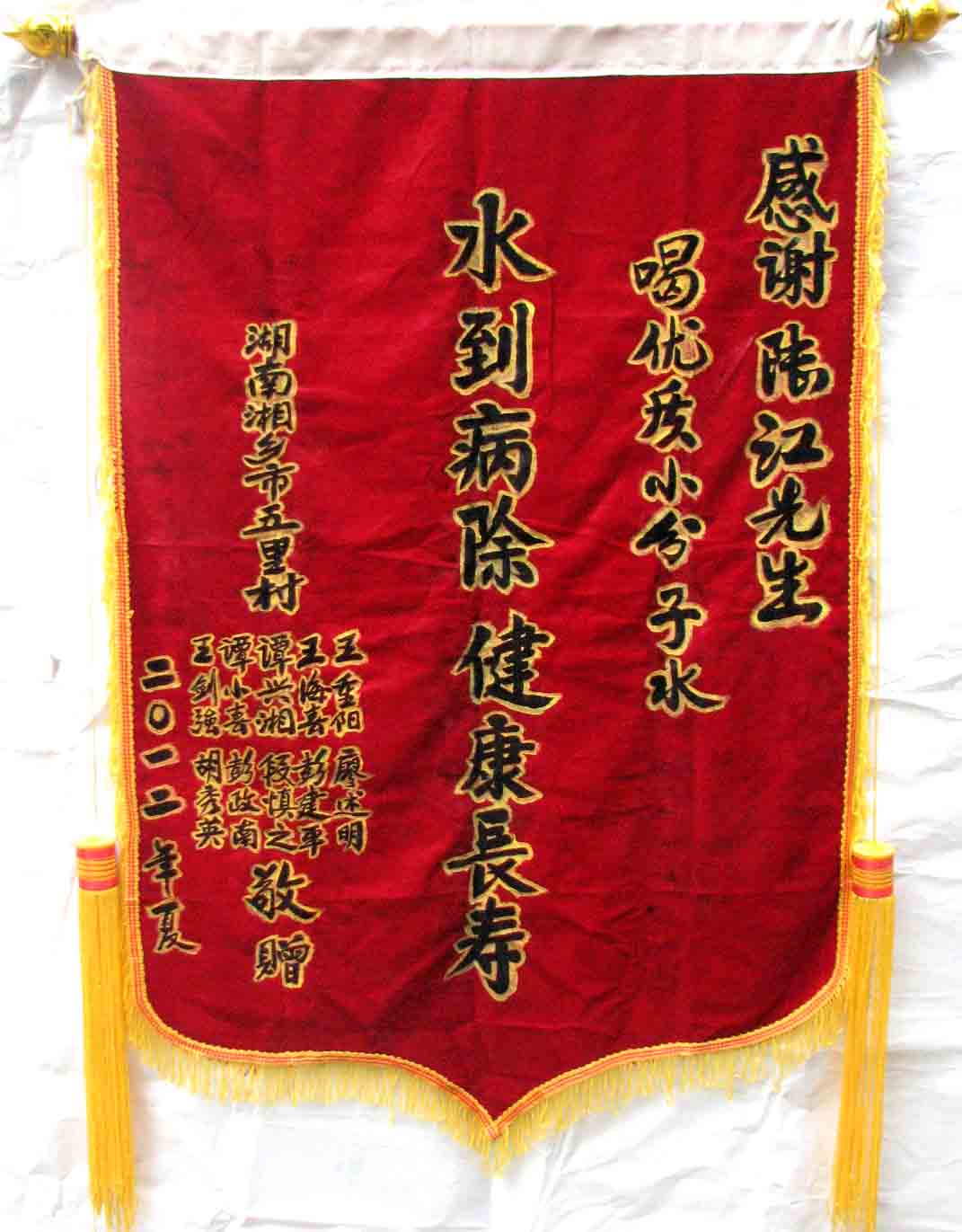 2015年潘志山主動寫一篇感想《我以親身實踐打破了冠心病、高血壓、糖尿病需終生服藥的神話》說堅持按發明人陸?江先生倡導的用已饑方食的方法合理膳食,我的健康狀況越來越好:糖尿病造成的視力下降有了明顯的恢復,末梢神經炎導致的指端潰爛現在完全痊愈,痔瘡自從飲用微小分子團水半年后就再也沒有復發過,氣滯血瘀造成的嘴唇暗紫也漸漸變得紅潤,舌下靜脈黑紫消失,足背的動脈由以前的隱約感到跳動現在變得清晰有力。[13]潘先生披露的訣竅,一是飲用微小分子團水給脫水細胞補水,二是已饑方食”養生智慧,患者都能做到。